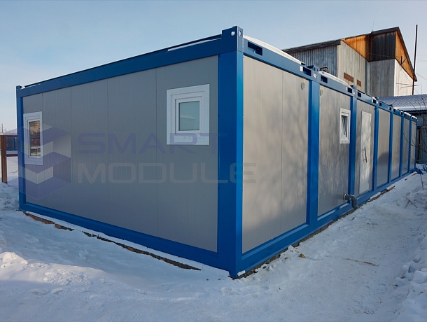 Размеры блок-контейнера 8,0 х 2,43 х 3,2 м – 4 шт., размер здания 10,0 х 8,0 х 4,45 м с учётом навесного фасада. Высота потолка 2,7 м Стандартные цвета наружной отделки RAL 5005, RAL 7...